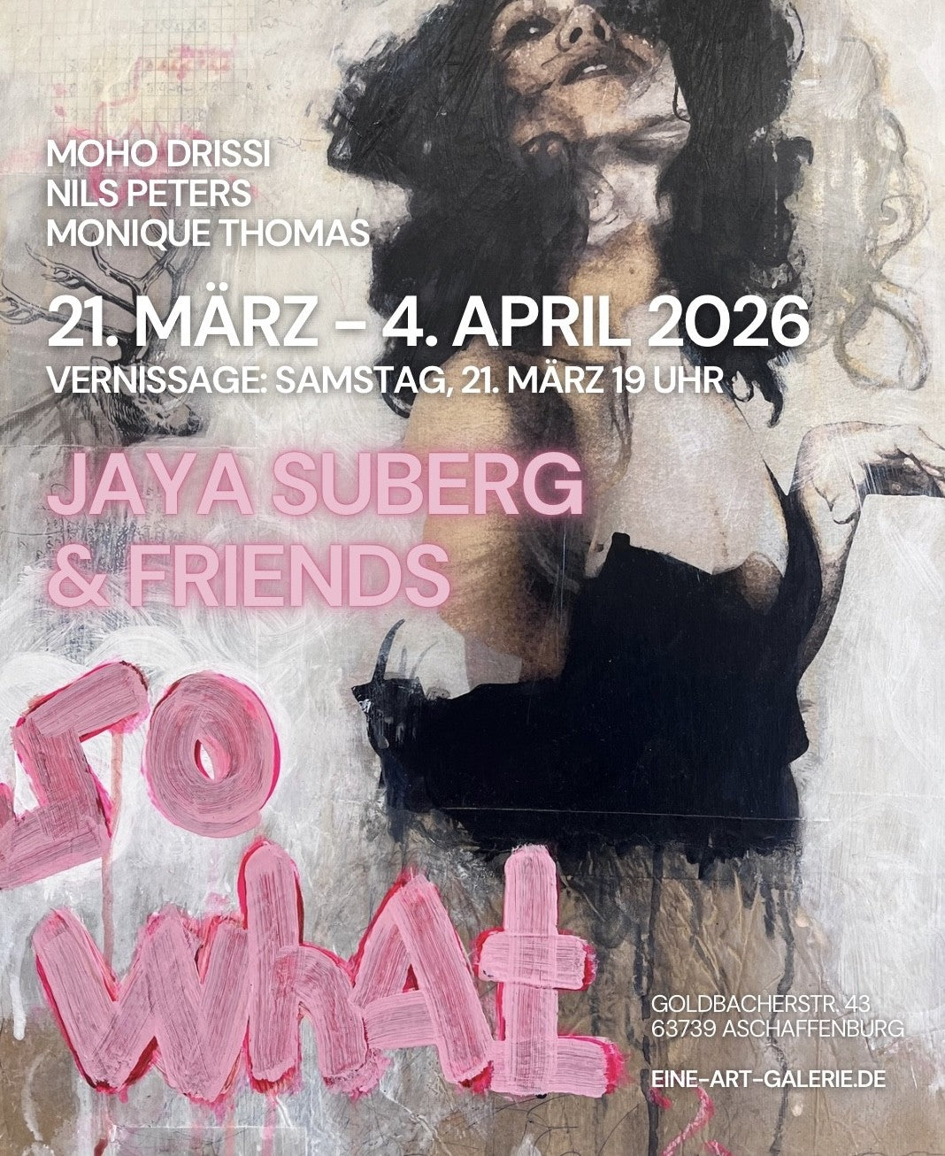On Saturday, March 21st (at 7 pm), we kick off the new 2026 art season with the exhibition "SO WHAT" by Jaya Suberg . Also featured are new works by Moho Drissi , Monique Thomas , and Nils Peters . We look forward to seeing many of you there. Admission is free.